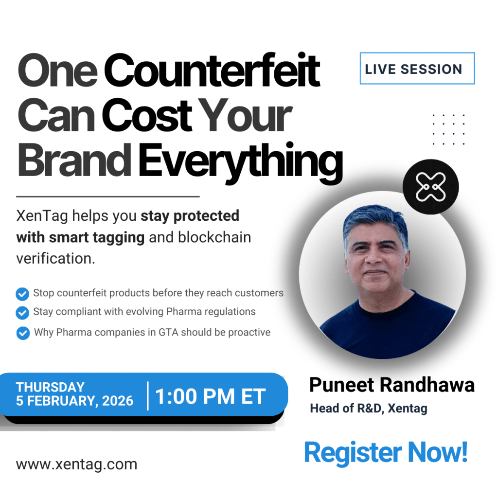Counterfeit products are becoming harder to detect and the damage to brand reputation and consumer trust can be irreversible. Join Puneet Randhawa, for a live session on how smart tagging and blockchain verification are reshaping brand protection in the pharmaceutical sector. Learn how to identify risks early, stay compliant with evolving regulations, and safeguard your supply chain before it’s too late.